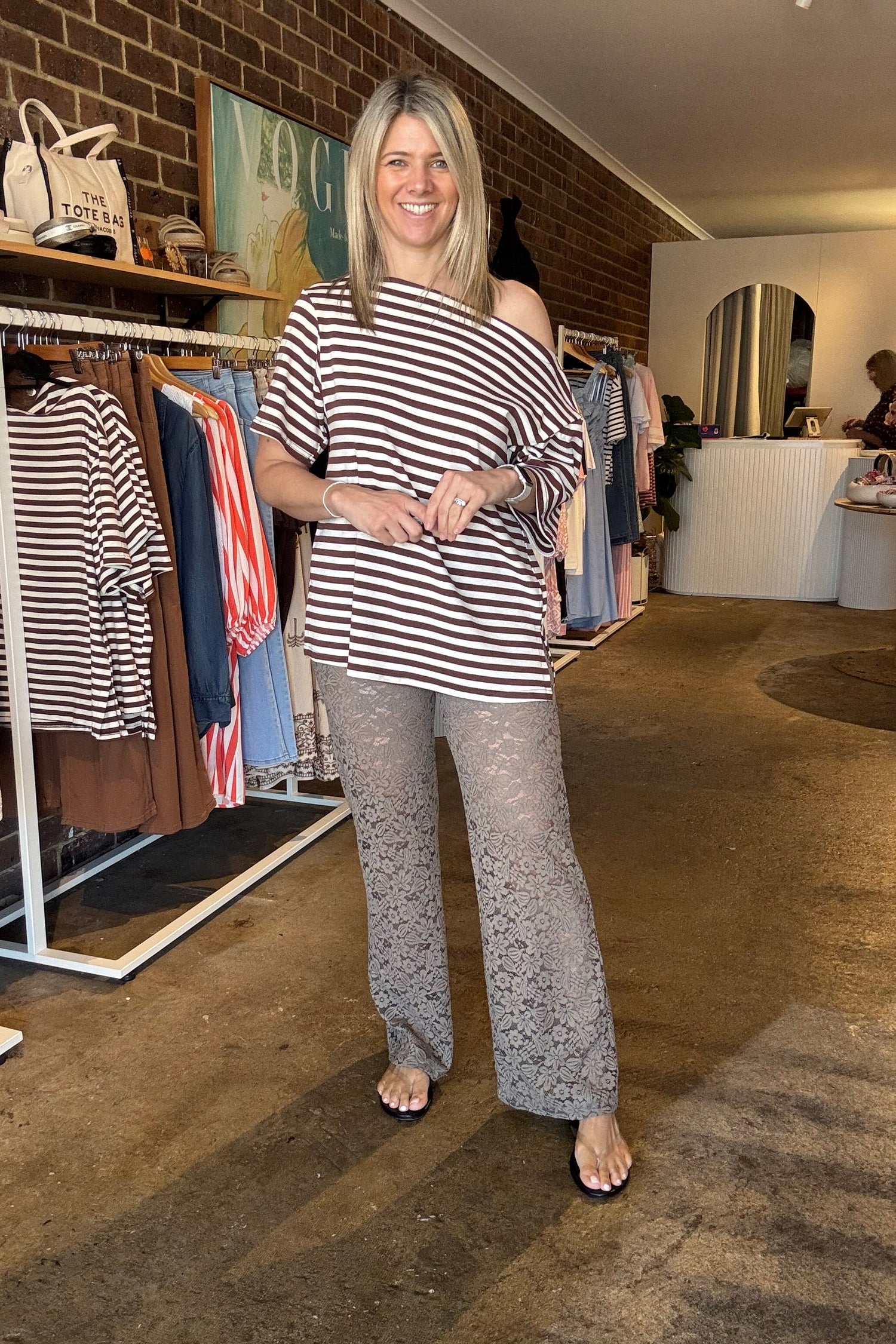 Roxy Stripe Tee - Chocolate/ White Stripe