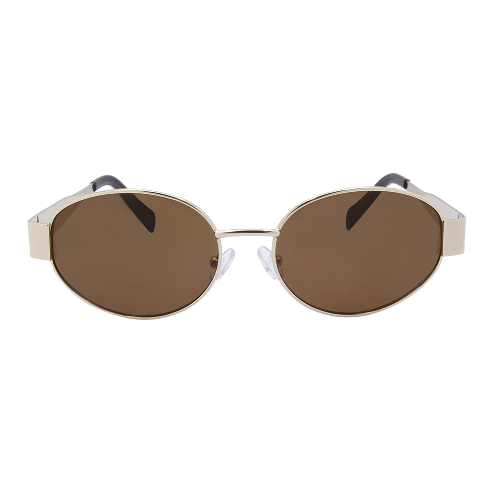 Introducing Kendall—the epitome of '90s nostalgia reimagined with a modern edge. With sleek oval frames, luxe gold metal arms, and refined polycarbonate tips, these sunglasses exude effortless sophistication. Crafted from premium metal for enduring quality, they feature brown UV400 lenses for impeccable clarity and protection. A perfect balance of vintage allure and contemporary elegance, Kendall is the ultimate statement piece for those with an eye for timeless style.