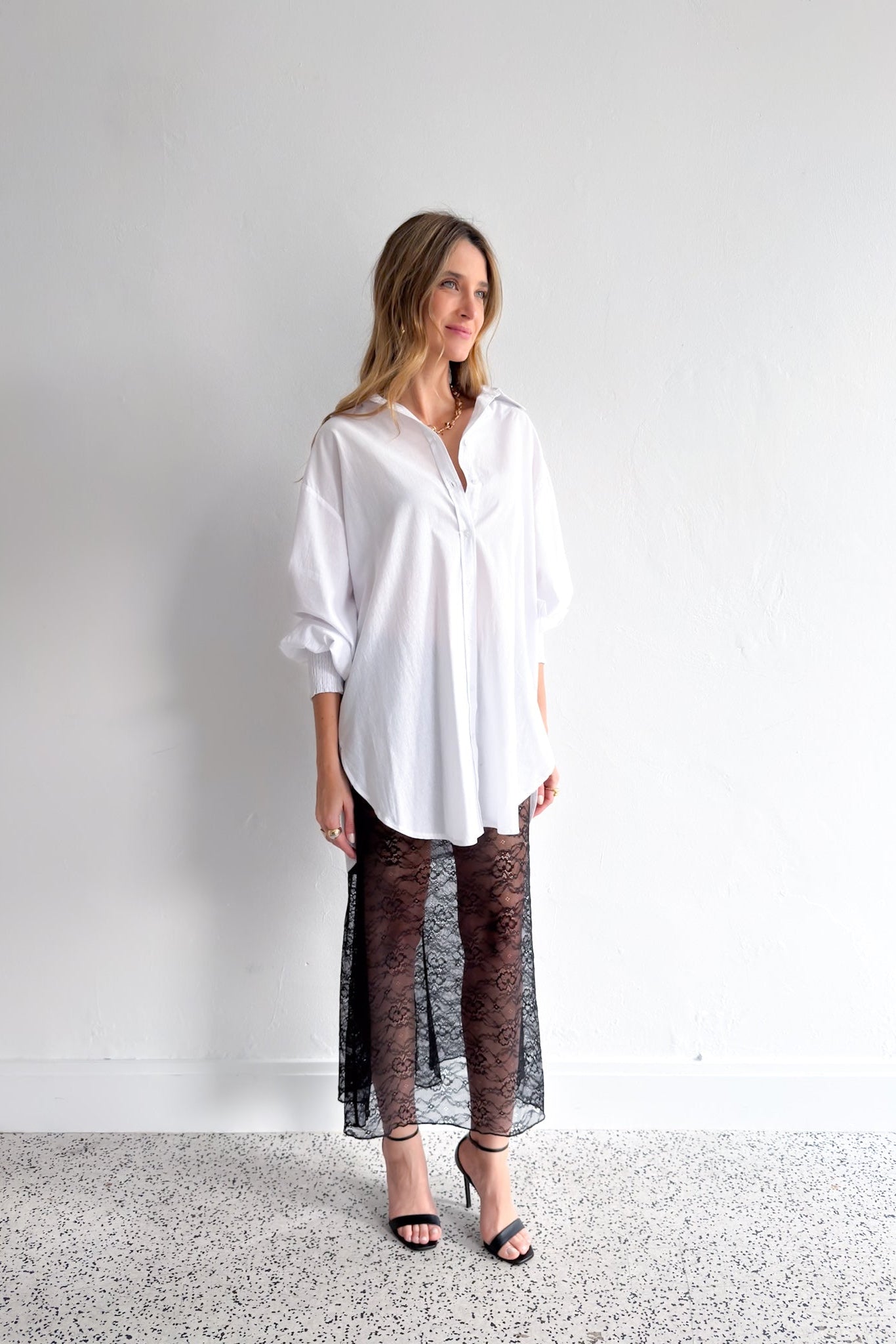 Crisp, timeless, and effortlessly cool — our Oversized White Shirt is a wardrobe essential designed for endless styling possibilities.